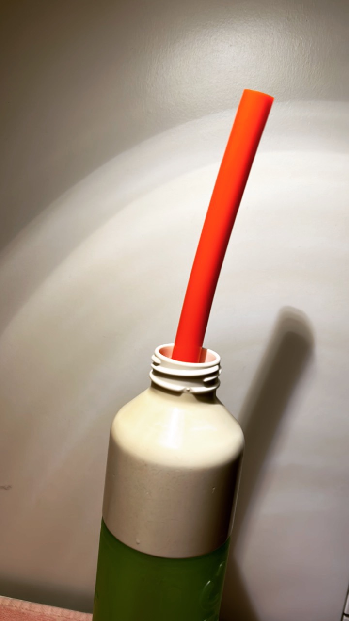 Het buisje van ca. 35 cm doe je in de fles en laat je een stukje zakken in het water.